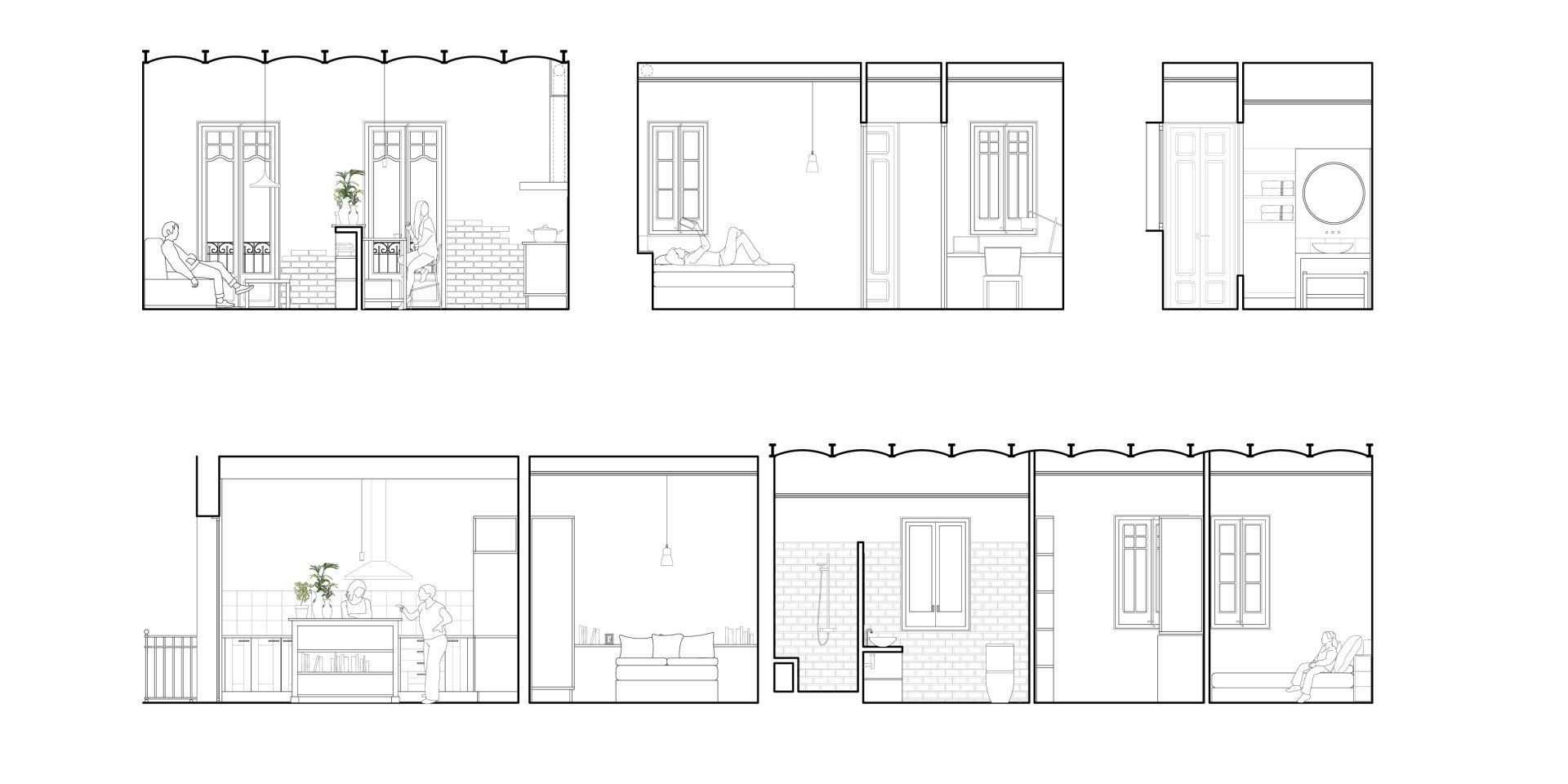 La transformació comença per desvestir les parets, alliberar paviments i descobrir sostres característics. Finalitzat aquest procés, es reordenen els espais, s'equilibren, s'omplen de llum.